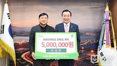 미담타임스 김준완 기자 | 지난해 북구 평생학습대학을 수료한 도성찬 씨가 전자책 발간 수익금 500만원을 5일 북구교육진흥재단에 장학금으로 기탁했다. 도 씨는 지난해 북구 평생학습대학 SNS소통학과 1인 미디어 과정을 수강하고, 강의를 바탕으로 전자책 '일본소도시 여행 - 마쓰야마, 고치를 가다'를 펴냈다. 해당 전자책은 지난해 8월 교보문고 여행·취미 분야 베스트셀러에서 3주 연속 1위를 기록하기도 했다. 도 씨는 "여행을 기록한다는 편한 마음으로 전자책을 발간했는데 예상외로 많은 독자들이 관심을 가져 주셔서 베스트셀러에도 올랐다"며 "오늘 기탁한 장학금이 학생들에게 도움이 되기를 바란다"고 말했다. 도 씨는 현재 후속 전자책 발간도 준비하고 있다.