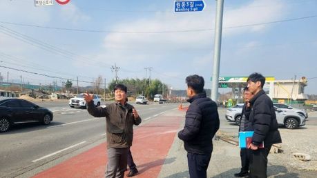 미담타임스 김준완 기자 | 울산광역시의회 공진혁 의원(의회운영위원장)은 17일 오후 2시, 울주군 온양읍 일원의 도로교통 민원 현장 3개소를 직접 방문하여 교통안전 실태를 점검하고 주민 불편 해소 방안을 논의했다. 이번 현장활동에는 울주경찰서 교통과를 비롯해 울산시 교통기획과·건설도로과 담당자들이 함께 참석하여 민원 현황 보고와 개선 방안에 대한 현장 협의를 진행했다. 이날 점검한 민원 현장은 ▲온양읍 미라주아파트 앞 삼거리(좌회전 신호 신설 요청), ▲온양읍 원동길 동천1교 인근(좌회전 신호등 위치 이동조치 요청), ▲온양읍 한양립스아파트 앞 삼거리(차로 확장 요청) 등 세 곳으로, 모두 지역 주민들이 지속적으로 불편을 호소해 온 교통 취약 지점이다. 공진혁 의원은 각 현장에서 관계 공무원 및 경찰로부터 교통 현황 보고를 청취하고 민원인 의견을 직접 확인하는 한편, 신호체계 개선 및 도로 구조 변경의 필요성과 실현 가능성을 관계기관과 즉석에서 검토했다. 공진혁 의원은 "교통 불편 민원은 시민의 일상 안전과 직결된 문제인 만큼, 탁상 검토에 그치지 않고 현장에서 직접 실태를 확인하는 것이 중요하다"