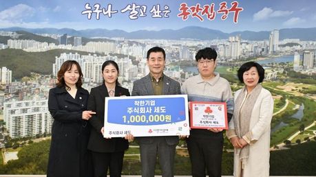 미담타임스 김준완 기자 | 울산 중구가 울산사회복지공동모금회와 함께 3월 19일 오후 3시 중구청 구청장실에서 ㈜세도(대표 원종환)에 착한기업 현판을 전달했다. 이번 전달식에는 김영길 중구청장과 원종환 ㈜세도 대표, 김희성 학성동 지역사회보장협의체 위원장, 차정하 울산사회복지공동모금회 팀장 등 6명이 참석했다. ‘착한기업’은 사회복지공동모금회가 추진하는 나눔천사 사업의 일환으로, 기업의 사회적 책임 이행 및 지역사회와의 동반 성장을 위해 매년 일정 금액을 기부하는 기업을 의미한다. ㈜세도는 앞으로 매년 100만 원을 정기적으로 기부할 예정이다. 해당 기부금은 학성동 지역 취약계층 지원 및 복지 사각지대 해소를 위한 다양한 사업에 사용될 예정이다. 원종환 ㈜세도 대표는 “지역사회의 관심과 성원에 보답하는 마음으로 착한기업에 가입하게 됐다”며 “앞으로도 지속적으로 사회공헌 활동을 펼치며 지역과 함께 성장해 나가겠다”고 말했다. 김영길 중구청장은 “지역 경제 활성화에 기여하고 나아가 소외된 이웃에게 따뜻한 마음을 전해주셔서 감사드린다”며 “선한 영향력이 널리 확산돼 더욱 촘촘한