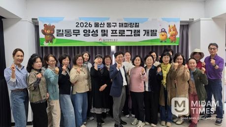 미담타임스 김준완 기자 | 울산 동구는 문화체육관광부와 한국관광공사가 추진하는 ‘코리아둘레길 쉼터 운영 및 지역프로그램 연계 사업’의 일환으로 ‘2026 해파랑길 길동무 양성 과정’을 3월 27일 개강해 운영한다. ‘해파랑길 길동무 양성 과정’은 해파랑길을 기반으로 지역 관광 자원을 연계한 걷기 프로그램을 운영할 전문 인력을 양성하기 위한 교육 과정으로, 지역 주민이 직접 참여하는 지속가능한 관광 콘텐츠 발굴을 목표로 한다. 이번 교육은 3월 27일부터 4월 24일까지 총 13회, 35시간 과정으로 운영되며, 방어진문화센터 2층 열린교육실 및 해파랑길 일원에서 진행된다. 교육 대상은 길동무 교육생 20명과 해파랑쉼터 자원봉사자 8명 등 총 28명이다. 교육 과정은 해파랑길 스토리와 사운드워킹을 결합한 프로그램 개발을 중심으로, 지역 관광·생태·건강을 융합한 이론 및 실습 교육으로 구성된다. 특히 생태 해설, 탐조 활동, 안전교육, 걷기 지도 역량 강화, 사운드워킹 콘텐츠 기획 및 운영 등 실무 중심 교육이 진행될 예정이다. 또한, AI 기반 음원 편집과 콘텐츠 제작 등 최신 기술을 활용한 관광 프로