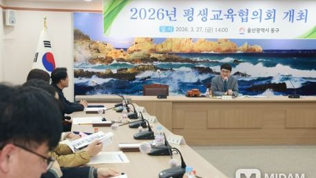미담타임스 김준완 기자 | 울산 동구는 지역 평생교육의 효율적인 추진과 기관 간 협력 강화를 위해 3월 27일 오후 2시 동구청 2층 상황실에서 ‘2026년 평생교육 협의회’를 개최했다. 이번 협의회에서는 설레는 배움, 함께하는 성장, 더 나은 삶이 펼쳐지는 평생학습도시 울산 동구를 비전으로 2026년도 울산 동구 평생교육 추진 계획을 논의했다. 이날 회의에서는 ▲평생학습도시 중장기 연구용역 보고 및 조성 방향 ▲동 평생학습센터 운영 활성화 ▲평생교육 거점기관 운영 등 다양한 안건이 논의됐다. 특히 주민 참여 확대와 지역 특성을 반영한 맞춤형 평생교육 프로그램을 운영해야 한다는 데 공감대를 형성했다. 올해 울산 동구 평생교육 프로그램은 ▲생애단계별 주민 맞춤형 교육 ▲유기적 협력체계를 통한 동반 성장 ▲사회적 약자 배려 등에 중점을 두어 추진된다. 위원장인 류재균 동구 부구청장은 “이번 평생교육협의회는 지역 평생교육 정책의 방향을 고민하고 협력하는 중요한 자리”라며 “앞으로 다양한 의견을 듣고 주민이 체감할 수 있는 평생학습 환경을 조성해 나가겠다”라고 밝혔다.