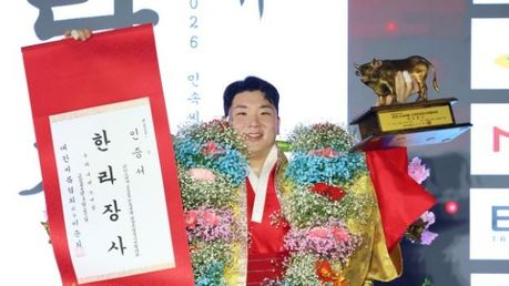 미담타임스 김준완 기자 | 울주군 해뜨미씨름단 소속 김무호(23) 선수가 지난 27일 충청북도 단양군 단양체육관 동관에서 열린 ‘위더스제약 2026 민속씨름 단양온달장사씨름대회’에서 한라장사에 등극했다. 김무호는 이날 5판 3선승제로 펼쳐진 한라장사(105㎏ 이하) 결정전에서 차민수(25·영암군민속씨름단)를 3-0로 제압하며 개인 통산 11번째 꽃가마에 올랐다. 김무호는 16강과 8강에서 각각 곽수훈(증평군청)과 오창록(MG새마을금고씨름단)을 상대로 2-0 완승을 거두며 순조롭게 준결승에 안착했다. 이어 4강에서는 한라장사 9회에 빛나는 박민교(용인특례시청)와 맞붙어 들배지기를 연이어 성공시키며 2-0으로 승리하고 한라장사 결정전에 진출했다. 결승에서 김무호는 강력한 우승후보인 차민수(영암군민속씨름단)와 맞붙었다. 김무호는 주특기인 들배지기로 연달아 득점하며 2-0으로 앞서 나갔고, 마지막 판에서는 밀어치기로 승부를 마무리하며 우승을 확정했다. 이번 대회 우승으로 김무호는 지난해 추석대회와 천하장사, 올해 설날대회에 이어 4개 대회 연속 한라장사에 오르며 무서운 기세를 이어가고 있다.