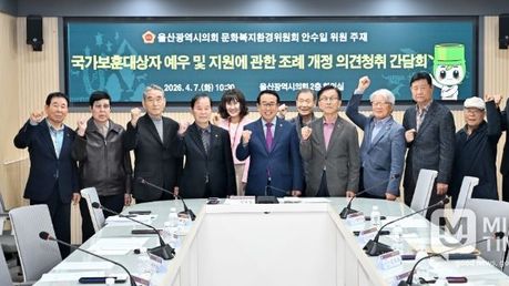 미담타임스 김준완 기자 | 울산광역시의회 문화복지환경위원회 안수일 의원은 4월 7일 오전 10시 30분, 시의회 2층 회의실에서 국가보훈대상자 예우 및 지원 강화를 위한 조례 개정 의견 청취 간담회를 개최했다. 이번 간담회는 광복회 울산광역시지회, 시 보훈노인과 관계자 등 13명이 참석한 가운데, 국가보훈대상자 지원 확대 방안과 현장의 애로사항을 청취하고 제도 개선 방향을 논의하기 위해 마련됐다. 이날 간담회에서는 ‘유족 사망 이후 배우자 의료비 지원 공백’ 문제가 핵심 의제로 집중 논의 됐다. 현행 조례는 독립유공자 및 유족까지만 의료비 지원 대상에 포함하고 있어, 유족 사망 시 고령 배우자가 지원에서 제외되는 제도 공백이 지속적으로 지적 되어왔다. 참석자들은 “고령의 유족 배우자들이 의료비 부담으로 어려움을 겪고 있다”며, “타 시·도 사례처럼 지원 범위를 확대하는 것이 필요하다”고 입을 모았다. 안 의원은 “국가를 위해 헌신하신 분들과 그 가족에 대한 예우는 지방정부의 중요한 책무”라며 “보훈은 일회성이 아닌 지속적인 책임이라는 점에서, 독립유공자와 유족뿐 아니라 유족의 배우자까지 의료비