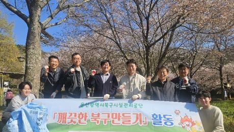 미담타임스 김준완 기자 | 울산광역시 북구 시설관리공단(이사장 임정식)은 4월 8일 북구 관내 화동못 일원 및 공단 시설 외곽 등에서 '깨끗한 북구만들기' 활동을 전개했다. 이번 환경 정화 활동에는 관리직 임직원 9명이 직접 참여했다. 참석자들은 지역 주민들의 발길이 닿는 산책로 주변의 생활 쓰레기를 꼼꼼히 수거하고 시설 외곽 환경을 정비했다. 이번 행사는 공단이 추구하는 탄소 중립 및 환경 보호 활동의 일환으로, 공공기관에 요구되는 사회적 책임을 적극적으로 실천하기 위해 마련됐다. 무엇보다 관리직 임직원들이 먼저 나서서 솔선수범하는 모습을 보임으로써, 전사적인 조직 내 봉사 문화를 확산시키는 데 큰 의미를 두고 있다 이사장은 “관리직 임직원들이 솔선수범하여 지역사회를 쾌적하게 가꾸는 일에 직접 동참하게 되어 매우 뜻깊다”며, “앞으로도 우리 공단은 환경 보호라는 공공기관의 사회적 책임을 다하고, '구민행복, 감동경영'을 실현하기 위해 지역사회와 함께하는 다양한 활동을 앞장서서 실천하겠다”고 밝혔다