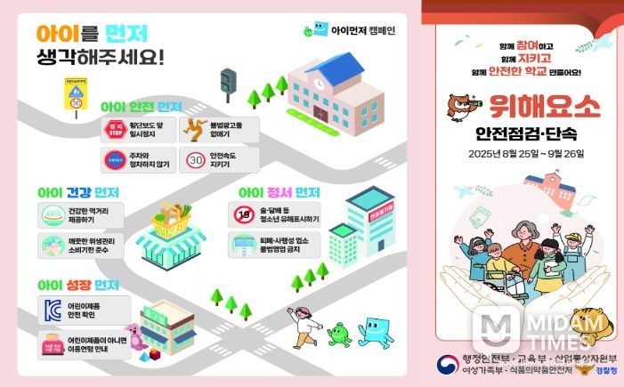 이번 점검은 개학기를 맞아 어린이가 안전하게 생활할 수 있는 환경을 조성하기 위해 관계부처 합동으로 진행 중인 ‘개학기 초등학교 주변 위해요소 집중점검’ (8.25.~9.26.)의 일환으로 실시됐다.