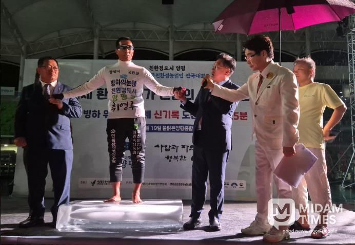 미담타임스 정인화 기자 | 광양시 홍보대사이자 국제환경운동가 ‘맨발의 사나이’ 조승환이 지난 9월 19일 (사)한국친환경농업협회가 주최한 2025 한국친환경농업인전국대회 개막식에 초청받아 세계신기록을 세웠다.