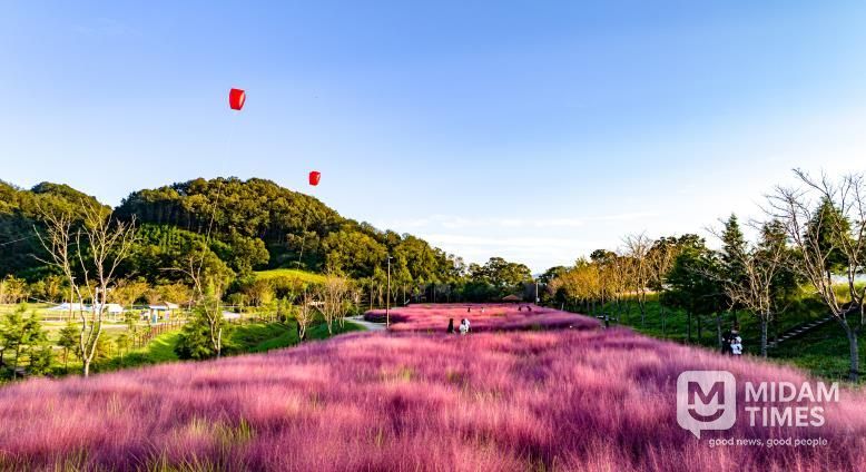 드넓은 초원을 분홍빛 물결처럼 출렁이게 만드는 핑크뮬리는 방문객들에게 몽환적이고 아름다운 풍경을 선사한다.