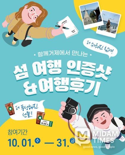 미담타임스 김교환 기자 | 거제시 시정소식지‘함께거제’는 시민과 독자의 참여를 확대하고, 거제 섬 여행의 매력을 널리 알리기 위해‘섬 여행 인증샷 & 여행후기 이벤트’를 10월 한 달간 진행한다.