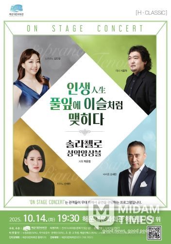 미담타임스 김교환 기자 | 해운대문화회관은 10월 14일 해운홀에서 ‘온 스테이지 콘서트 솔라첼로 성악앙상블’을 개최한다.