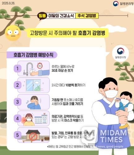 미담타임스 김준완 기자 | 울주군보건소가 추석 연휴 기간 고향 방문 및 가족 모임 증가에 따라 호흡기 감염병 예방수칙 준수를 당부한다고 1일 밝혔다.