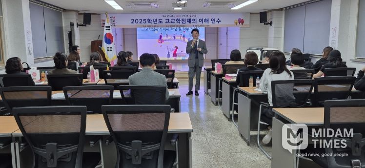 미담타임스 김준완 기자 | 경상북도영양교육지원청은 2025년 10월 22일 수요일 영양교육지원청 대회의실에서 관내 중등교원·학생·학부모를 대상으로 고교학점제에 대한 이해를 돕기 위한 연수를 오후와 저녁에 나누어 개최했다.