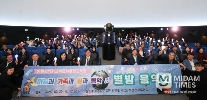 미담타임스 박민정 기자 | 도성훈 인천광역시교육감은 30일 인천학생과학관 천체투영실에서 열린 ‘별밤음악회’에 참여해 예술과 과학이 융합된 새로운 형태의 교육문화를 함께했다.