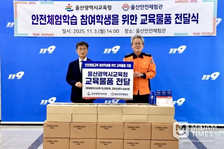 미담타임스 박민정 기자 | 울산광역시교육청은 3일 북구 울산안전체험관을 방문해 학생 안전교육에 활용할 물품 1만 5,600개(약 5,000만 원 상당)를 전달했다.