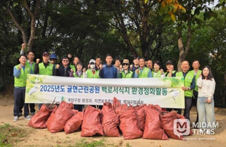 미담타임스 김준완 기자 | 인천광역시 계양구는 야생동물의 건강한 서식환경 및 주민의 쾌적한 주거환경 조성을 위해 지난 10월 30일 귤현근린공원 내 백로서식지에서 환경정화 활동을 실시했다.