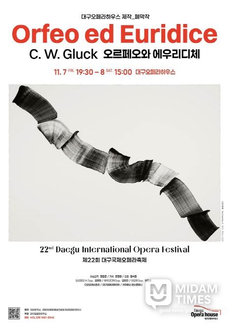미담타임스 김교환 기자 | 대구문화예술진흥원 대구오페라하우스는 제22회 대구국제오페라축제의 폐막작으로 글룩의 대표 오페라 ‘오르페오와 에우리디체’를 오는 11월 7일 오후 7시 30분, 11월 8일 오후 3시에 대구오페라하우스 대극장에서 선보인다.