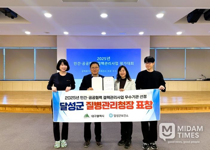 미담타임스 김교환 기자 | 대구 달성군보건소는 지난 4일 질병관리청이 주관한 ‘2025년 민간공공협력(PPM) 결핵관리사업 평가대회’에서 결핵환자 맞춤형 사례관리 부문에서 우수기관으로 선정되는 영예를 안았다.
