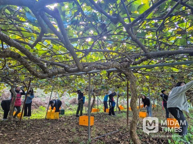 이날 오후 1시 30분부터 5시 30분까지 참다래 수확과 운반, 주변 환경 정비 등 다양한 작업에 참여하며 구슬땀을 흘렸다.