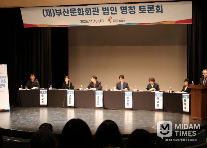 미담타임스 김교환 기자 | (재)부산문화회관은 11월 18일 부산문화회관 사랑채극장에서 개최한 '법인 명칭 토론회'를 성황리에 마무리했다. 본 토론회는 송교성 문화예술플랜비 대표가 좌장을 맡아 주관하며, 법인명(재단명) 변경 추진 경과와 공모·심의 결과를 공유하고 향후 방향성을 논의하는 자리로 진행됐다.