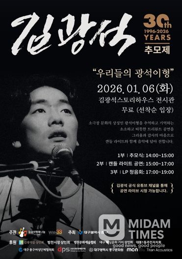 미담타임스 김교환 기자 | 대구 중구는 1월 6일 오후 2시 한국 대중음악사에 큰 발자취를 남긴 故 김광석의 30주기를 맞아 추모행사를 개최한다.