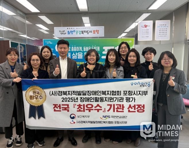 미담타임스 김준완 기자 | (사)경북지적발달장애인복지협회 포항시지부는 보건복지부와 국민연금공단이 실시한 2025년 장애인활동지원기관 평가에서 전국 504개 기관 중 상위 40개 기관에만 부여되는 ‘최우수’ 기관으로 선정되는 성과를 거뒀다.