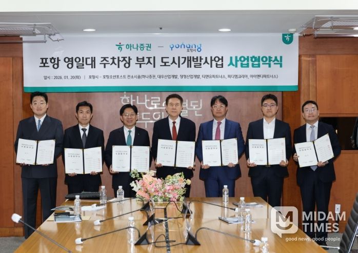 포항시는 20일 서울 여의도 하나증권 본사 사옥에서 영일대해수욕장 공영주차장 부지를 활용한 도시개발사업에 대한 사업협약을 체결했다.