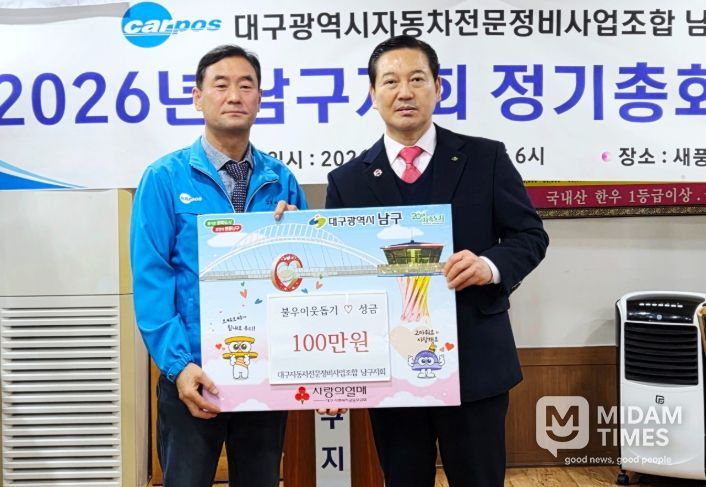 미담타임스 김교환 기자 | 대구자동차전문정비사업조합 남구지회는 매년 지역 내 소외된 이웃을 돕기 위한 성금을 기탁하며, 따뜻한 나눔을 실천하고 있다.