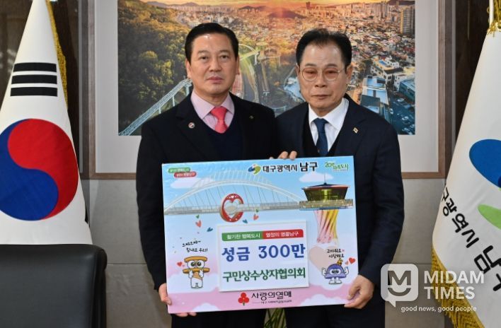 미담타임스 김교환 기자 | 대구 남구 구민상수상자협의회(회장: 조영원)는 지난 23일 남구를 찾아 어려운 이웃을 위해 써달라며 성금 300만원을 기탁했다. 이날 성금은 저소득 소외계층을 위해 사용될 예정이다.