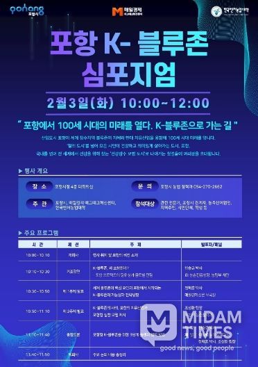 미담타임스 김준완 기자 | 포항시는 내달 3일부터 시청 대회의실에서 ‘포항에서 100세 시대의 미래를 열다, K-블루존으로 가는 길’ 심포지엄을 개최한다.