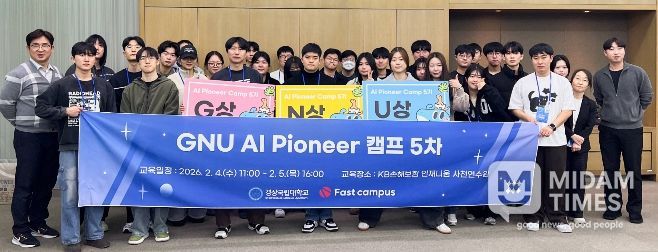 미담타임스 김교환 기자 | 경상국립대학교 교육혁신처(처장 양재경 환경재료과학과 교수)는 재학생의 인공지능(AI) 활용 실무역량을 강화시키기 위해 2월 4~5일 KB인재니움 사천연수원에서 재학생 30명이 참여한 가운데 ‘GNU 생성형 AI 실전형 합숙 캠프(GNU AI Pioneer Camp)’(5차)를 운영했다.