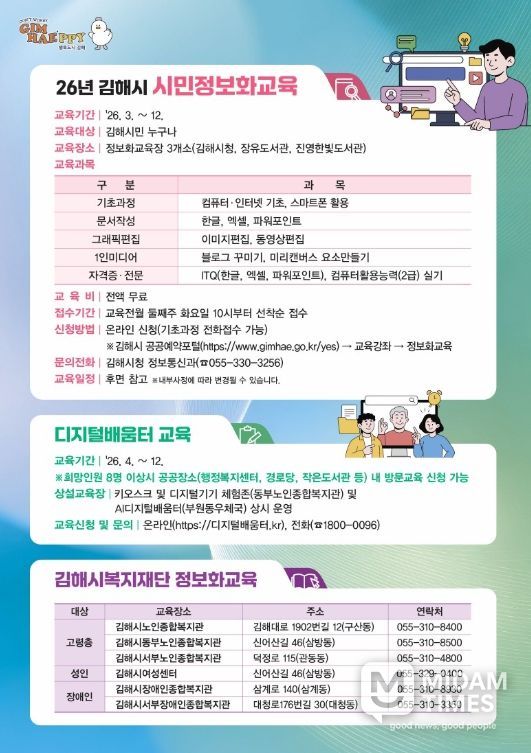 미담타임스 김교환 기자 | 김해시가 오는 3월부터 시민들의 디지털 문해력 향상과 생활 편의 증대를 위해 시민정보화교육을 운영한다고 밝혔다.