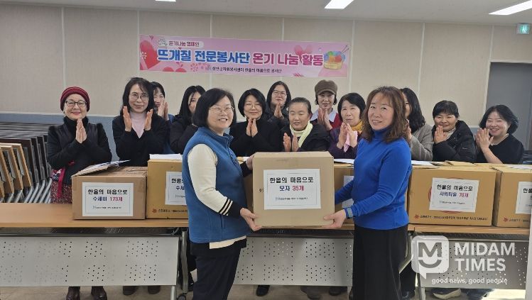 ‘한올의 마음으로’ 뜨개질봉사단(회장 우지원)은 이번 나눔을 위해 샤워타올 145점, 핸드타올 87점, 수세미 473점, 겨울모자 75점 등 총 780점의 손뜨개 생활용품을 직접 제작해 전달했다. 또한 청년동아리 오밀조밀(회장 이현승)과 함모아다락방(원장 이진희)은 석고방향제 50개와 양말목방석 25개를 제작해 기부했다.