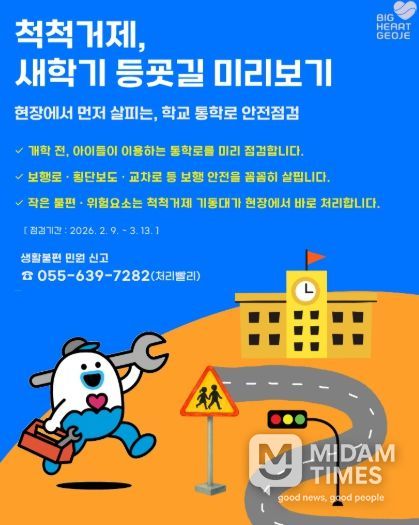 미담타임스 김교환 기자 | 거제시는 새학기를 앞두고 학생들의 안전한 통학환경 조성을 위해 '척척거제, 새학기 등굣길 미리보기' 기획순찰을 오는 2월 9일부터 3월 13일까지 추진한다.