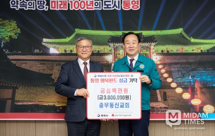 천영기 통영시장은 “지속적인 관심과 나눔을 실천해 주시는 충무동신교회에 깊이 감사드린다”며 “전해주신 성금은 꼭 필요한 곳에 뜻깊게 사용하겠다”고 말했다.