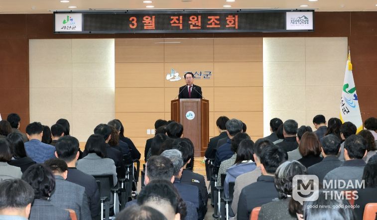 미담타임스 정인화 기자 | 충북 괴산군은 3일 군청 대회의실에서 3월 직원조회를 열고 민생안정지원금 신청률 98.4% 달성에 따른 직원들의 노고를 격려하고 봄철 주요 현안업무에 전 행정력을 집중해 줄 것을 당부했다.