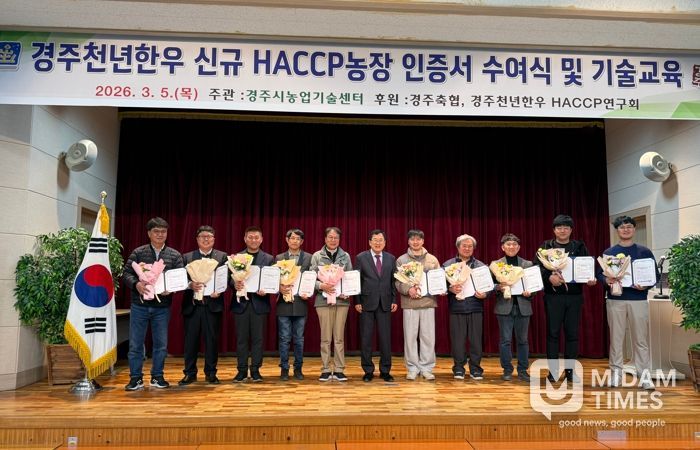 미담타임스 김준완 기자 | 경주시의 대표 한우 브랜드 ‘경주천년한우’가 체계적인 위생‧안전 관리 기반을 확대하며 전국 최고 수준의 축산 브랜드 경쟁력을 이어가고 있다.