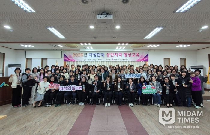 미담타임스 김준완 기자 | 포항시여성단체협의회는 지난 6일 포항시산림조합 숲마을 대강당에서 여성단체 회원 100여 명이 참석한 가운데 ‘2026년 여성단체 성인지력 향상 교육’을 실시했다.
