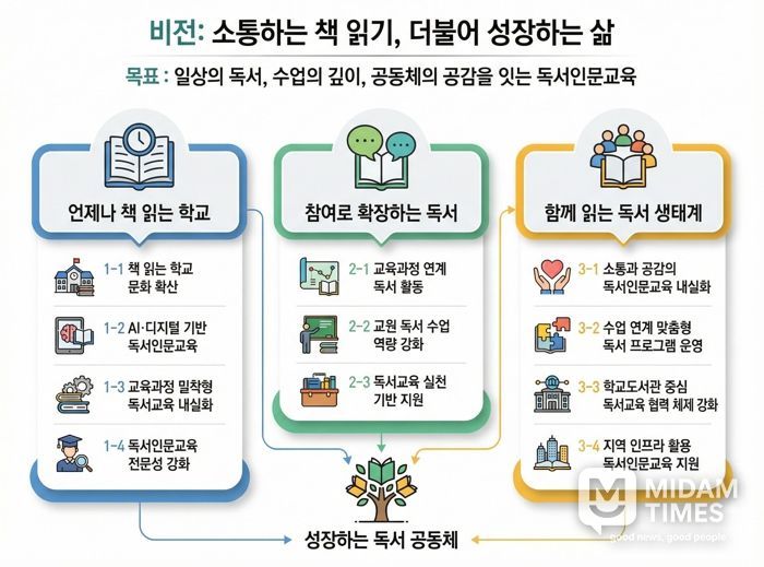 이번 계획은 독서를 일회성 행사에 그치지 않고, 학생의 사고력과 학습 역량을 지탱하는 핵심 기반으로 확장하는 데 중점을 두었다. 이를 통해 독서교육을 학교 교육과정과 학생들의 일상 속에 체계적으로 정착시킬 구상이다.