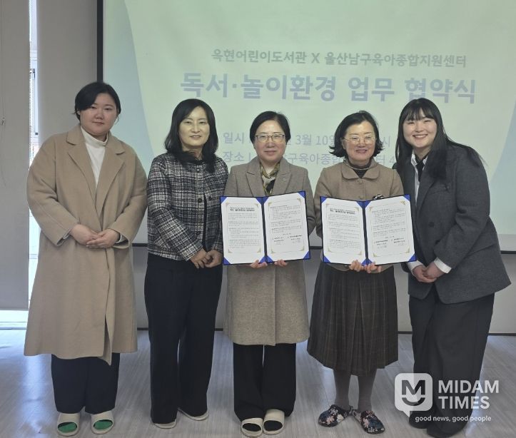 미담타임스 김준완 기자 | 울산 남구는 아이들이 책과 놀이를 함께 경험할 수 있는 환경을 조성하고 기관 간 양육 지원 협력을 강화하기 위해 옥현어린이도서관과 남구육아종합지원센터가 10일 업무협약을 체결했다.