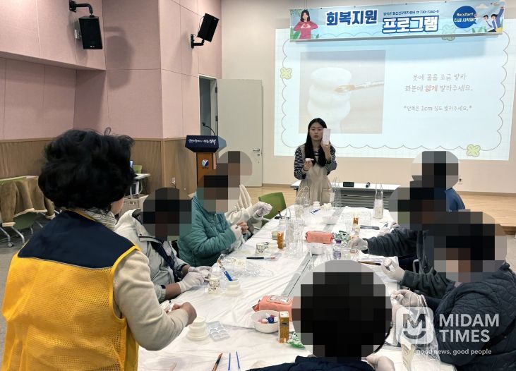 미담타임스 김준완 기자 | 영덕군보건소는 정신질환자의 심리적 정서적 안정을 도모하고 순조로운 사회복귀를 돕기 위해 이달부터 매월 둘째 주 화요일에 정신질환자 회복지원 프로그램 ‘빛결, 희망과 회복이 흐르는 빛’을 운영한다.