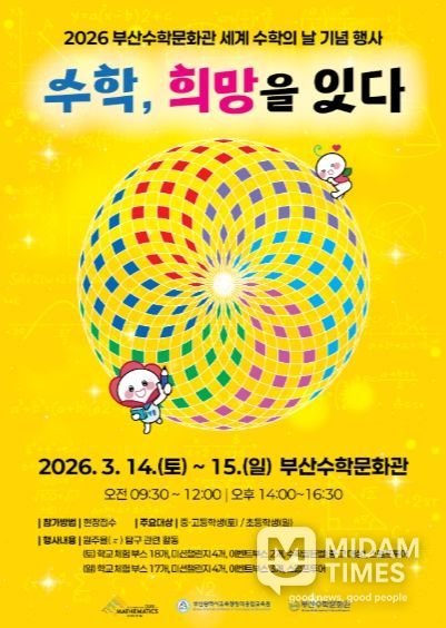 미담타임스 남혜영 기자 | 부산광역시교육청창의융합교육원은 오는 14일과 15일 이틀간 부산진구 부전동 부산수학문화관에서 학생들을 대상으로 ‘수학, 희망을 잇다’ 행사를 개최한다.