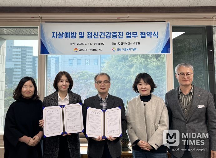 미담타임스 김준완 기자 | 김천시정신건강복지센터와 김천고용복지플러스센터는 11일 구직자의 정신건강 증진과 자살 예방을 위한 협력체계 구축을 위해 업무협약을 체결했다.