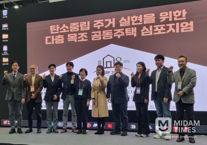 미담타임스 김준완 기자 | 산림청 국립산림과학원은 12일, ‘2026대한민국목조건축박람회’에서 ‘탄소중립 주거 실현을 위한 다층 목조 공동주택 심포지엄’을 개최하고 기후 위기 대응을 위한 국산 목재의 가치와 기술적 해법을 제시했다고 밝혔다.
