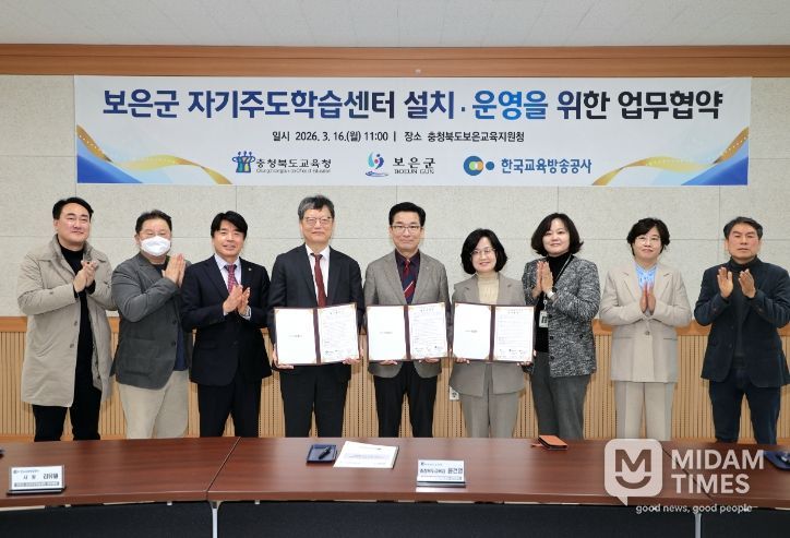 미담타임스 박민정 기자 | 충청북도교육청은 16일, 보은교육지원청에서 보은군, 한국교육방송공사와 보은군 자기주도학습센터 설치‧운영을 위한 업무협약을 체결했다.