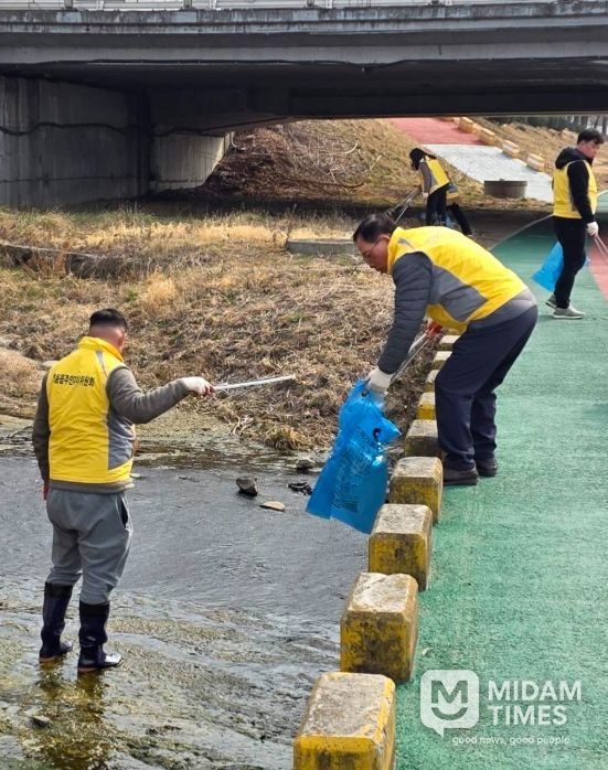 미담타임스 김준완 기자 | 충북 영동군 영동읍 주민자치위원회(위원장 박희삼)는 세계 물의 날(3월 22일)을 기념해 지난 16일 오후 영동천 일원에서 하천 환경정화 활동을 했다.