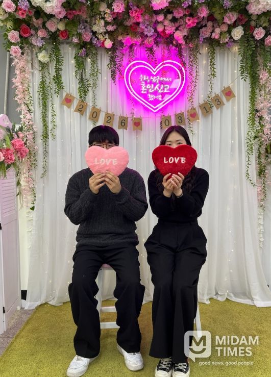 남구에 따르면 2024년 1,706건이었던 혼인신고 건수는 2025년 1,967건으로 크게 늘어났고 이러한 추세에 발맞춰 신혼부부에게 높은 만족감을 주기 위해 현대적인 감각으로 포토존을 리뉴얼했다.