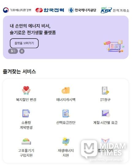 미담타임스 김준완 기자 | 한국전력이 기후에너지환경부, 한국에너지공단, 전력거래소와 함께 흩어져 있던 에너지 서비스 정보를 하나로 통합한 에너지절약 플랫폼 ‘슬기로운 전기생활’을 공식 오픈했다.