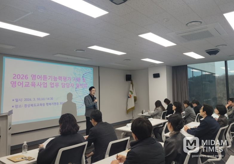 미담타임스 김준완 기자 | 경북교육청은 18일 본청 행복지원동 302호 회의실에서 도내 교육지원청과 직속 기관의 영어교육․국제교류 사업 담당자 20여 명을 대상으로 학생들의 영어 의사소통 능력 향상과 학교 영어 수업 개선, 국제교류 사업 운영 방안을 공유하기 위한 정책 설명회를 개최했다고 밝혔다.