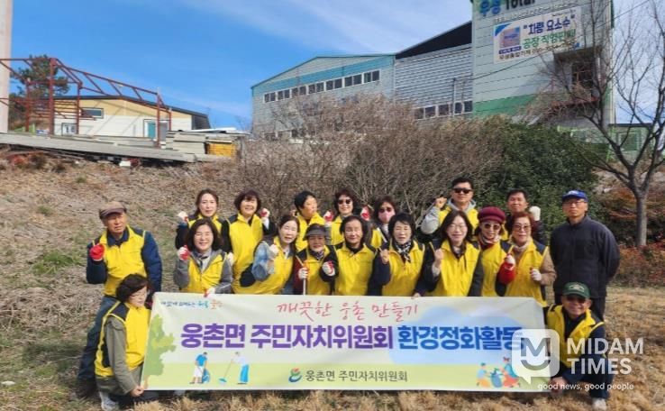 미담타임스 김준완 기자 | 울주군 웅촌면 주민자치위원회가 20일 웅촌면 오복마을 입구 돌티미꽃동산 일대에서 깨끗한 마을 환경 조성을 위한 환경정화활동을 실시했다.