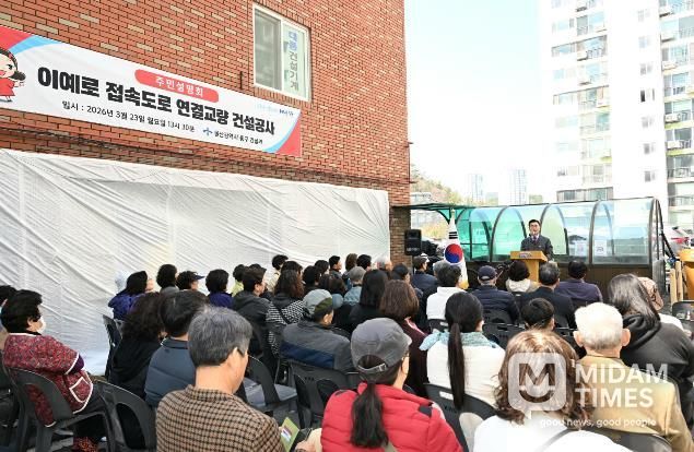미담타임스 김준완 기자 | 울산 중구가 3월 23일 오후 1시 30분 희마아파트 주차장 일원(태화동 460-3번지)에서 ‘이예로 접속도로 연결교량 건설공사’관련 주민설명회를 개최했다.