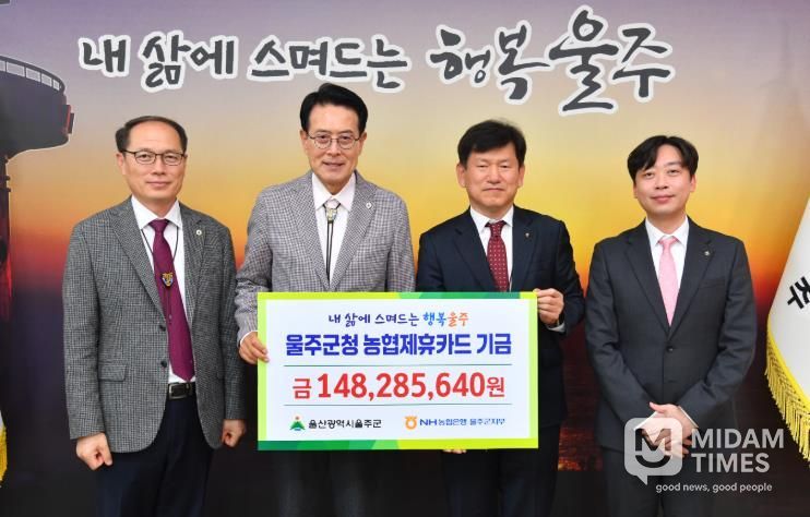 미담타임스 김준완 기자 | NH농협은행 울주군지부가 25일 울주군에 제휴카드 적립기금 1억4천828만원을 전달했다.